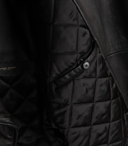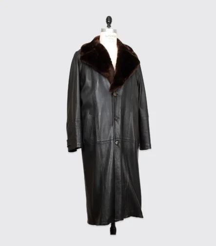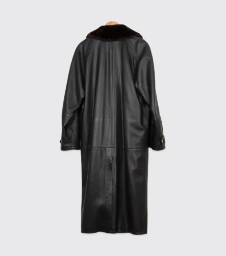 Salvatore Ferragamo Coat Size EU52 Black Leather Real Fur Collar Made in Italy