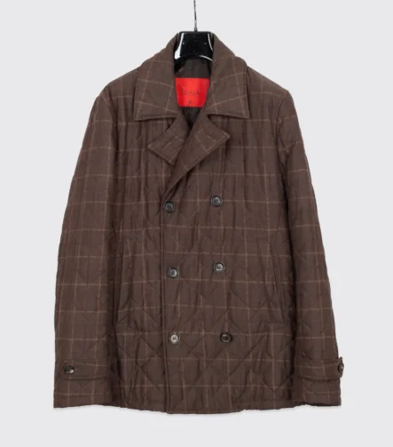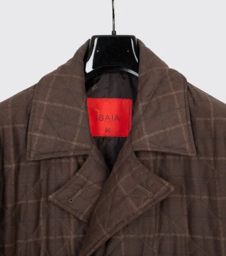 Isaia Napoli O’Sole Mio Double Breasted Jacket Size EU54 Brown Check Aqua Stampa