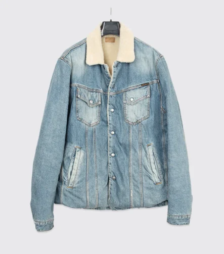 Nudie Jeans Co Lenny Sherpa Jacket Size 2XL Light Blue Wash Denim Fleece Lined