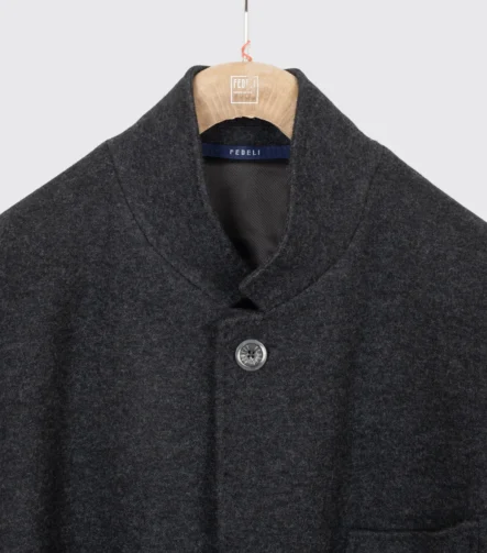 Fedeli Car Coat Size EU58 Men Dark Gray Knit Cashmere Unlined Made in Italy