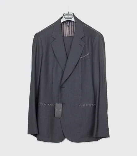 Giorgio Armani Napoli Suit Size EU56 Solid Gray Wool Two Button Made in Italy