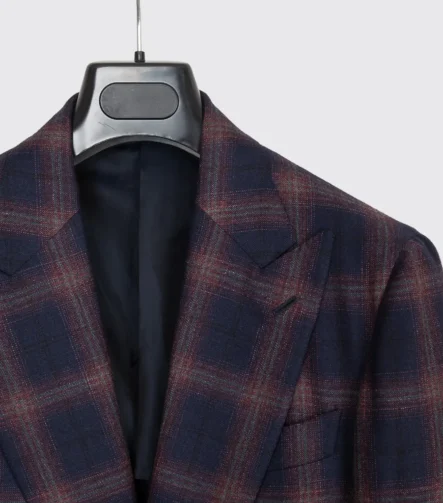 Isaia Napoli Sport Coat EU48 Navy Red Check Wool Cashmere Blend Made in Italy