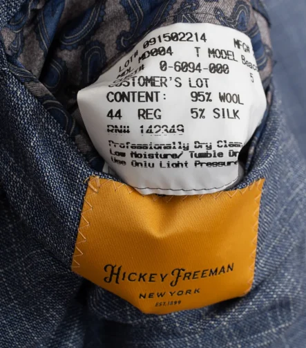 Hickey Freeman Beacon Jacket Size 44R Blue Woven Wool Silk Blend Made in U.S.A.