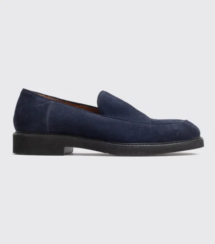 Aquatalia Shoes Size 13 Men Navy Blue Suede Weatherproof Loafer Made in Italy