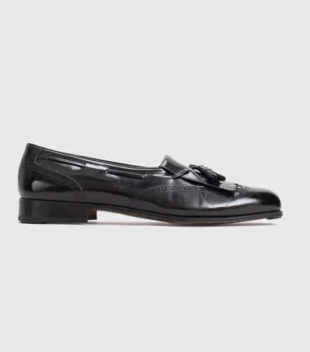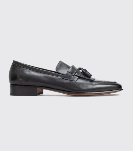 Salvatore Ferragamo Shoes Size 12 Men Black Smooth Leather Kilt Tassel Loafer