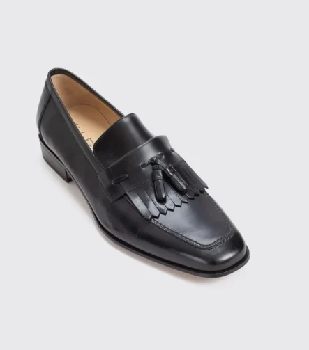 Salvatore Ferragamo Shoes Size 12 Black Calf Leather Mango Kilt Tassel Loafers