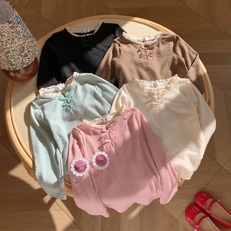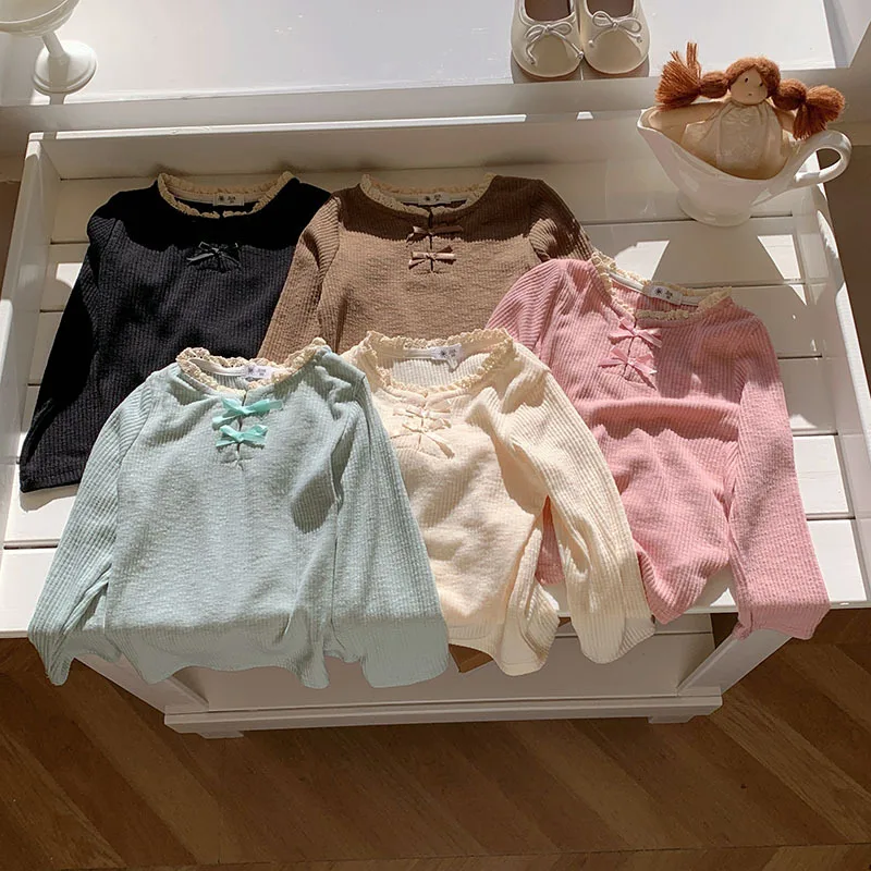 Baby Girls Long Sleeve T-shirt Kids Bowknot Tops Tees Toddler Bottoming Pullover Autumn Children’s Clothing Casual