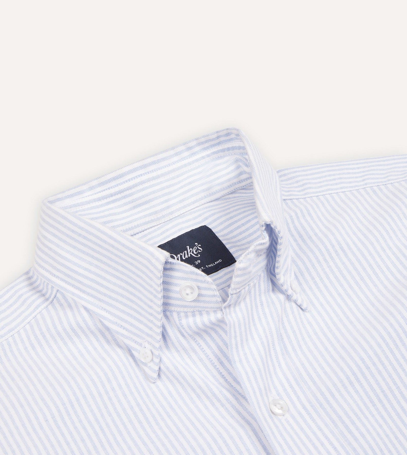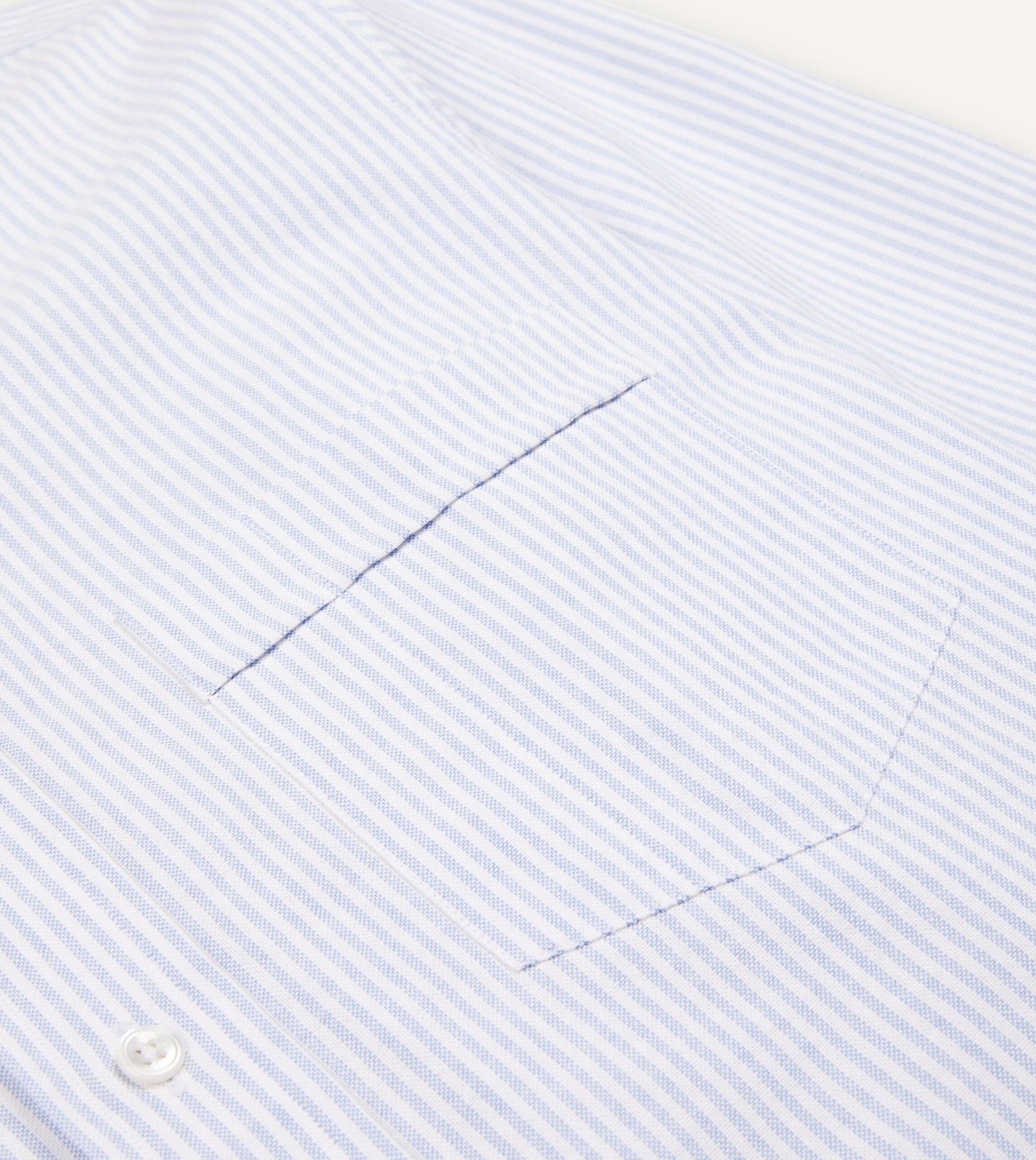Light Blue Ticking Stripe Cotton Oxford Cloth Button-Down Shirt
