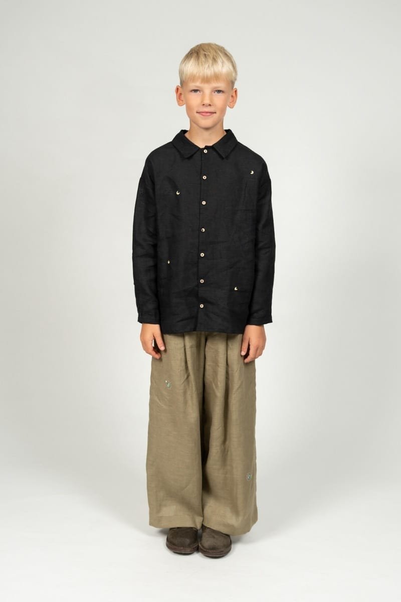 Unisex design, elastic waistband, stylish pleats at the front, two interior pockets, soft, washed, medium-weight organic linen fabric (160 g/m²).