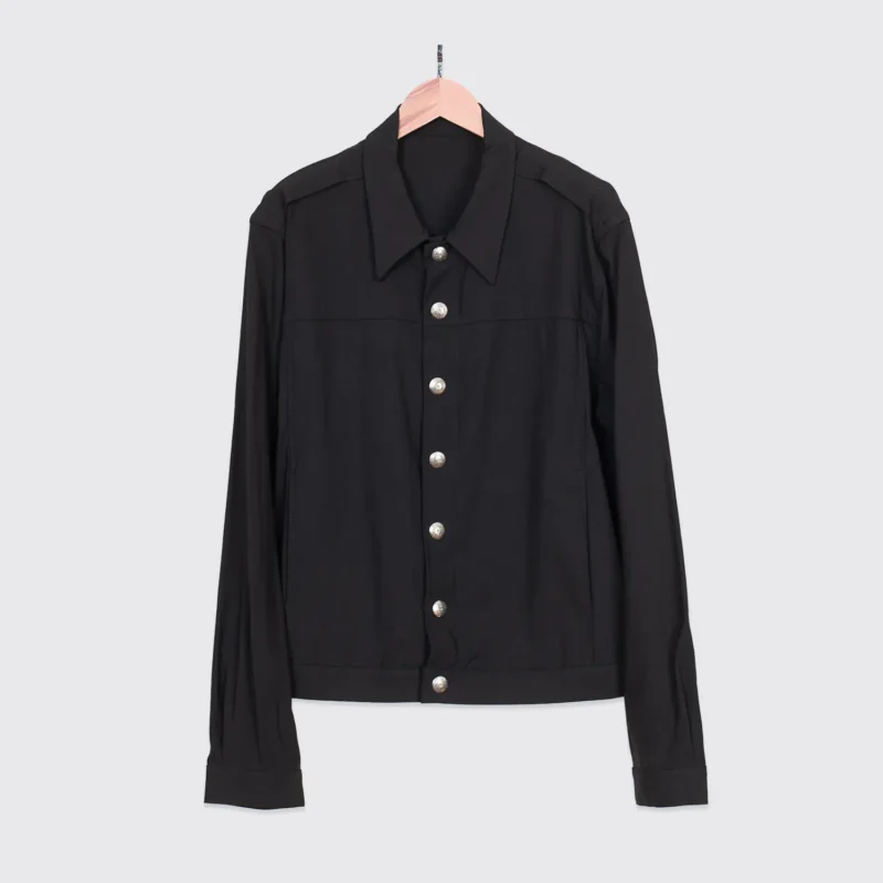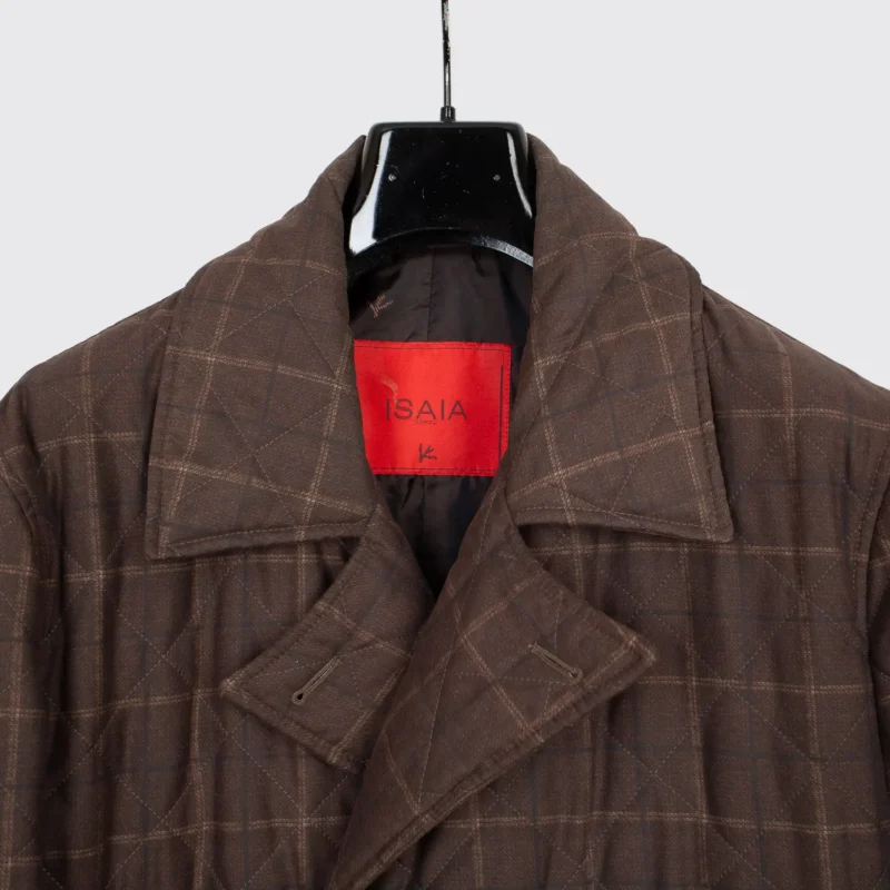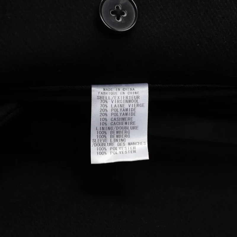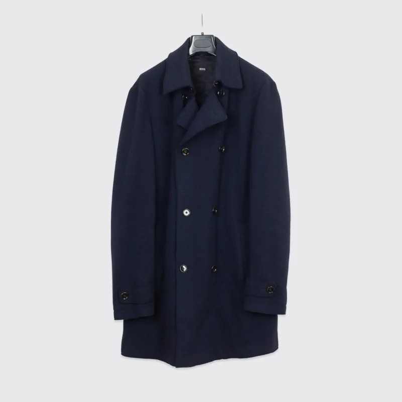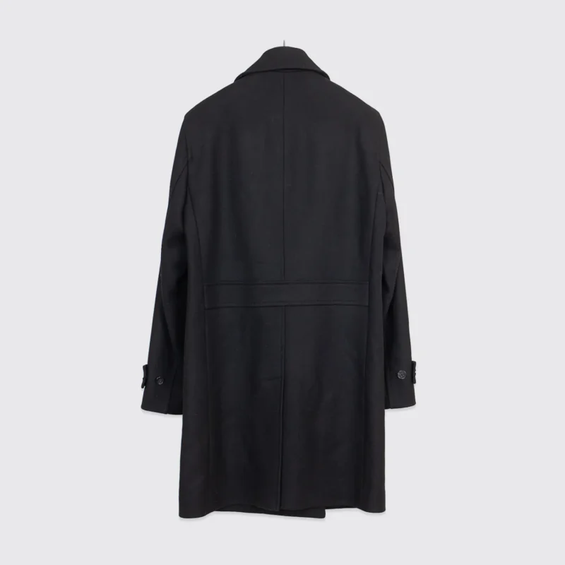 Size L, marked size 52 (Euro), measures 26 in chest (underarm to underarm), 27 (approx) in sleeve (from shoulder), 21 (approx) in shoulder width, 49.75 in length (bottom of collar to hem)