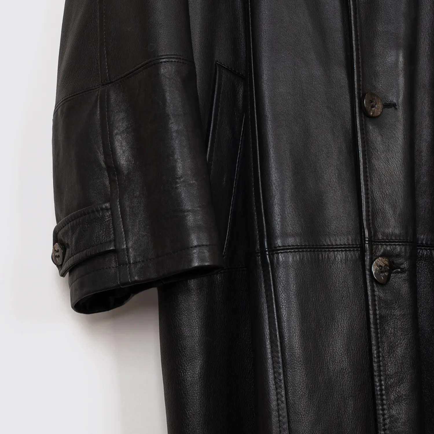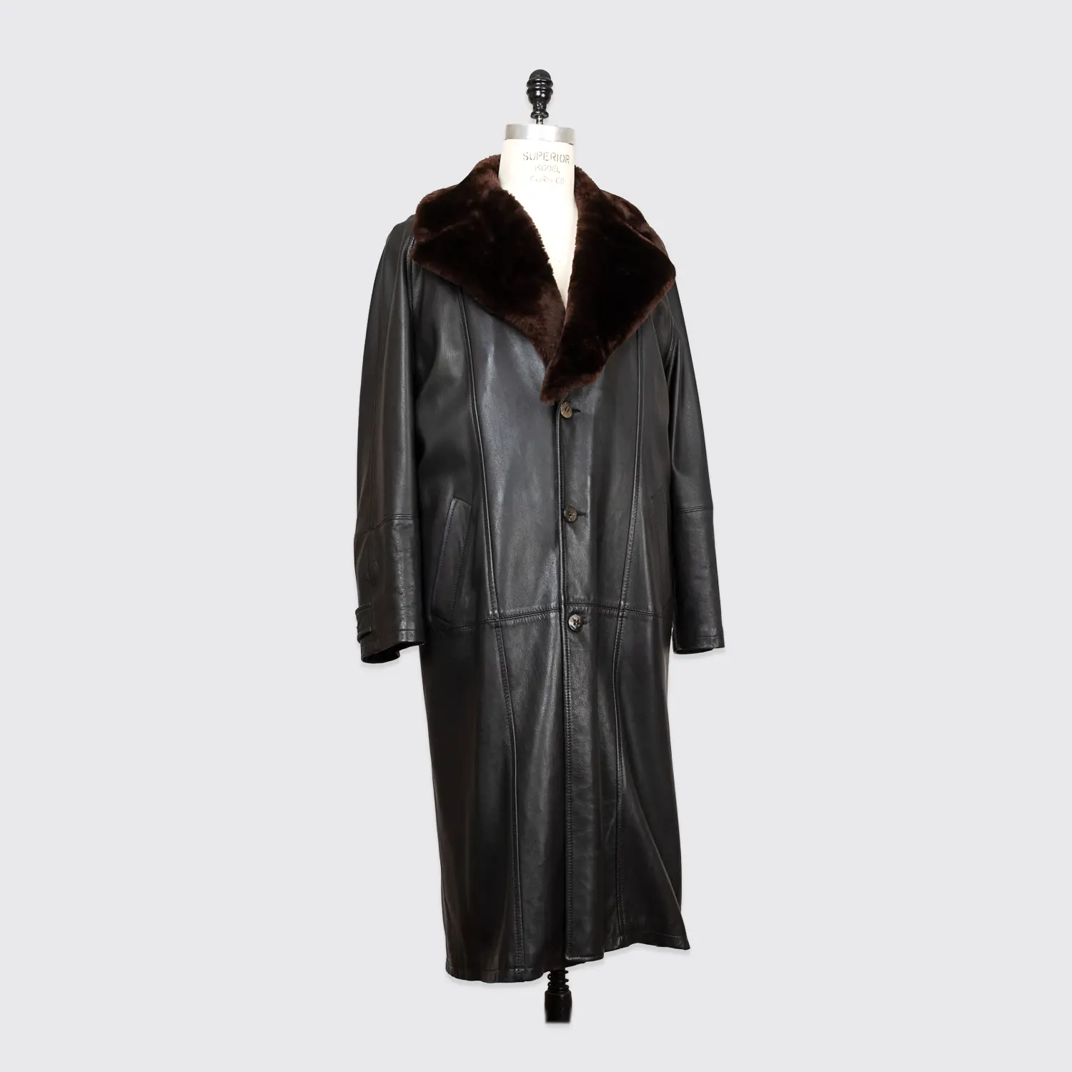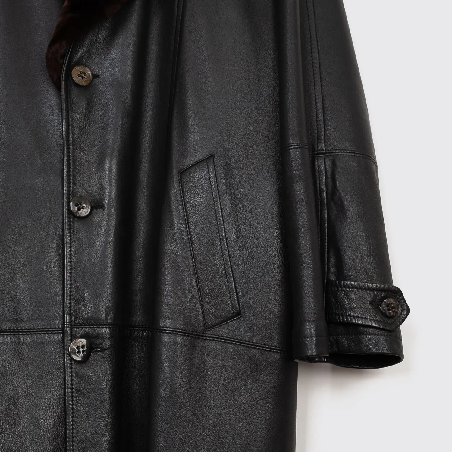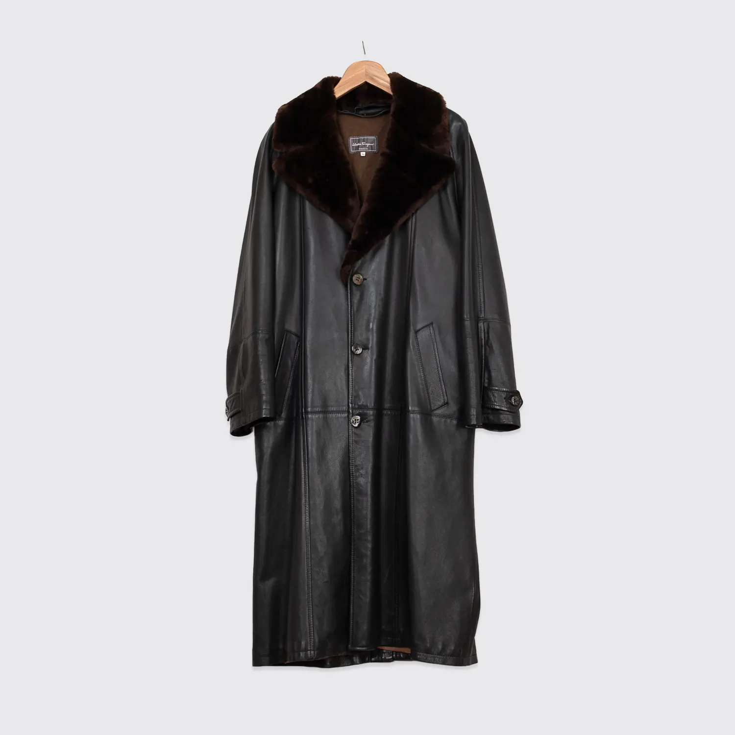 Salvatore Ferragamo Coat Size EU52 Black Leather Real Fur Collar Made in Italy