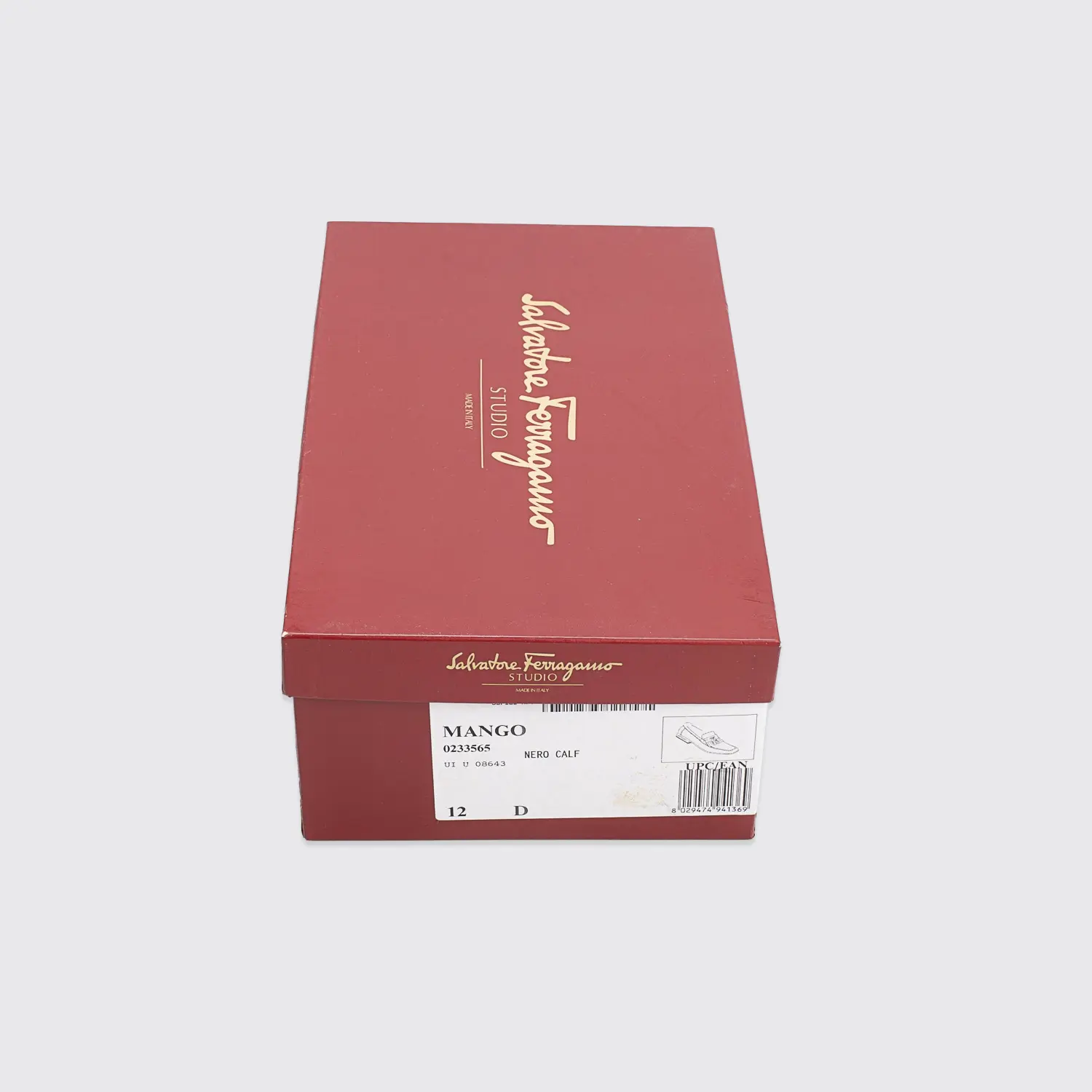 Salvatore Ferragamo Shoes Size 12 Black Calf Leather Mango Kilt Tassel Loafers