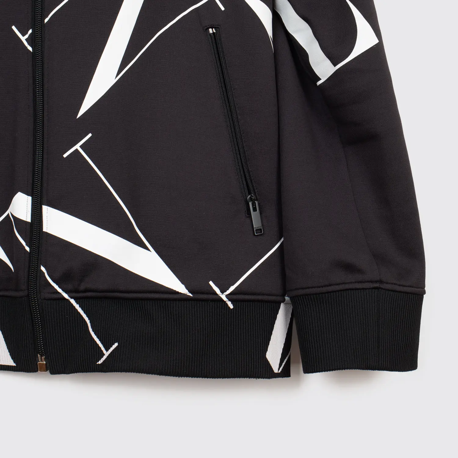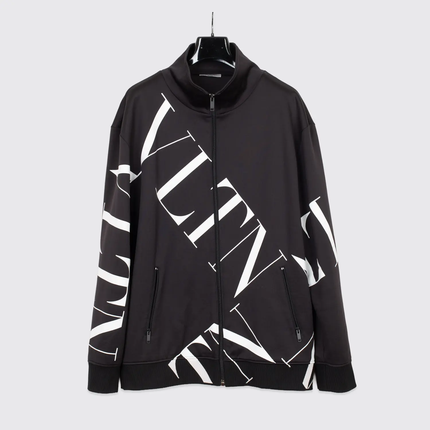 Valentino Track Jacket Size L Men Black VLTN Zip Up Enlarged Grid Print
